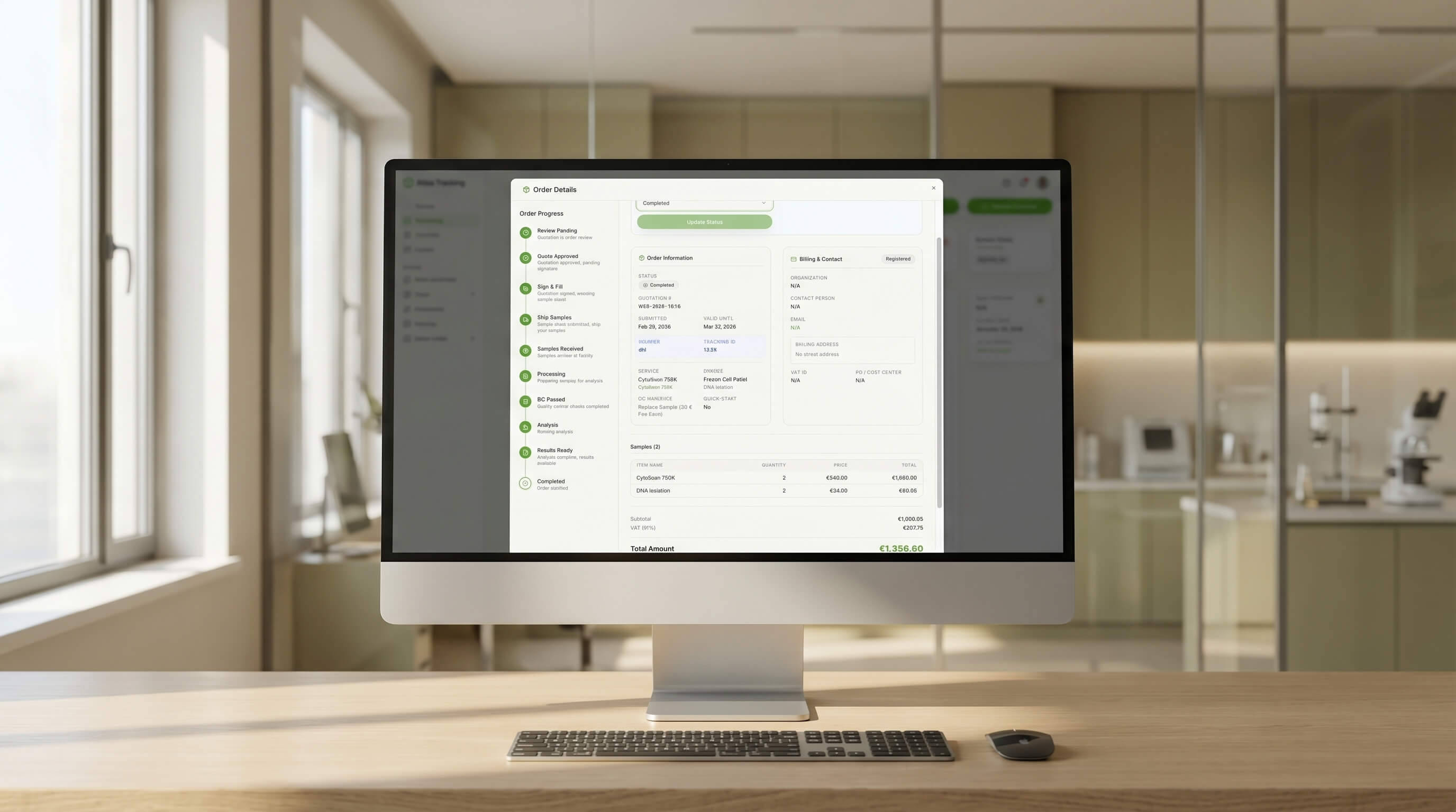Eine Echtzeit-Oberfläche über Atlas-Labore und Partner hinweg — Abhängigkeiten, Holds, Reservierungen, Folgewirkung und Ausführungsstatus in einer Schicht.