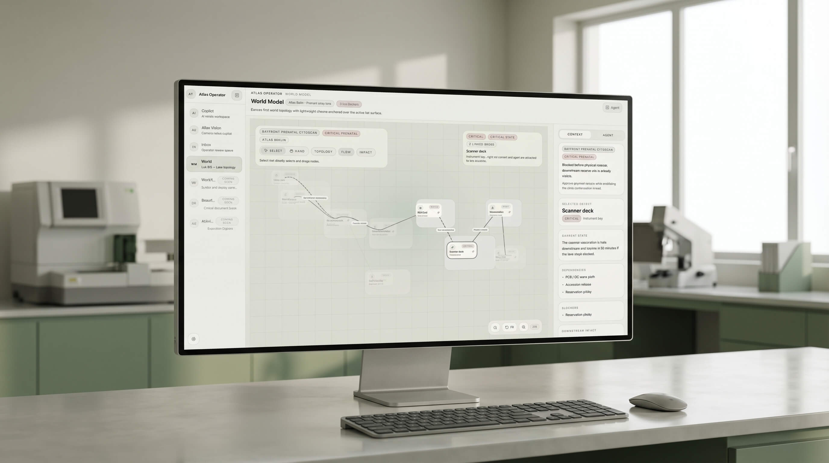 A real-time operational surface across Atlas laboratories and partners — dependencies, holds, reserves, downstream impact, and execution state in one layer.